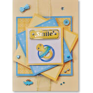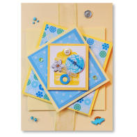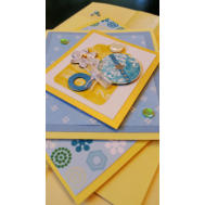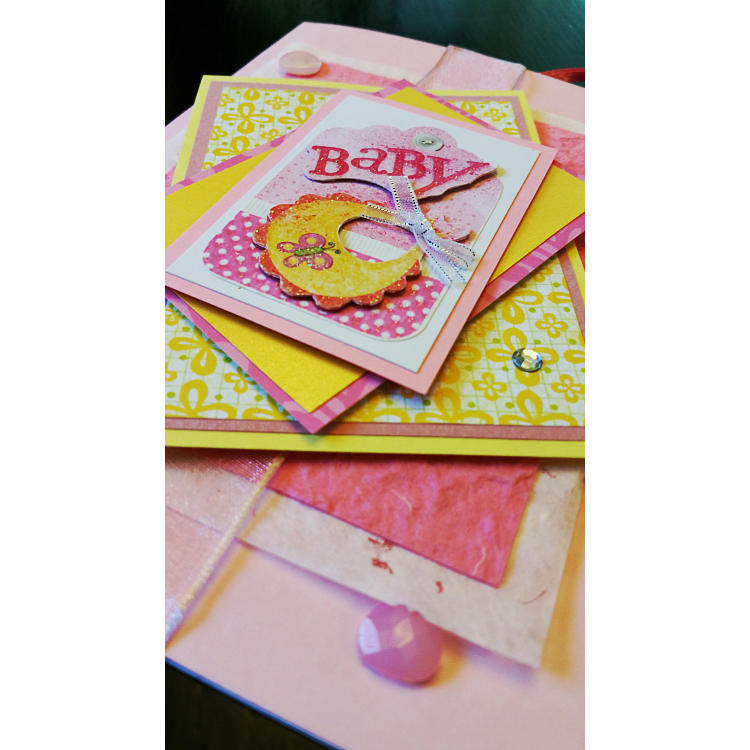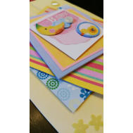 Features layers of card and paper, yellow