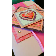 Features layers of card and paper, organza