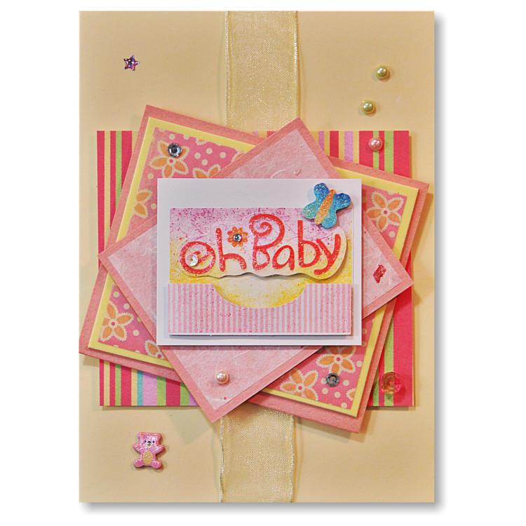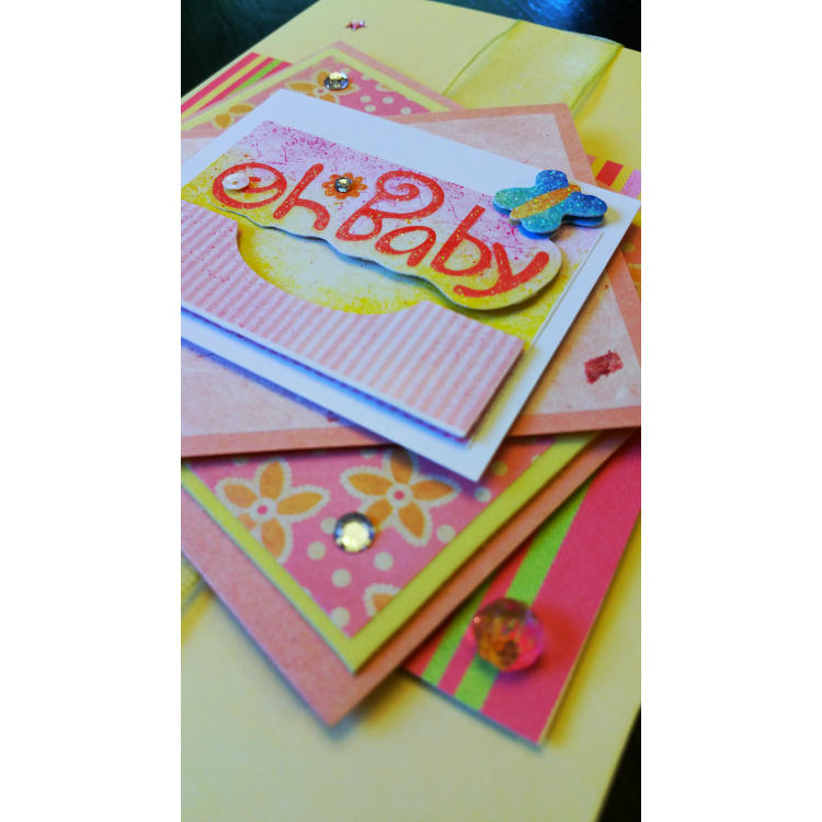 Yellow and pink with “Oh Baby!”
