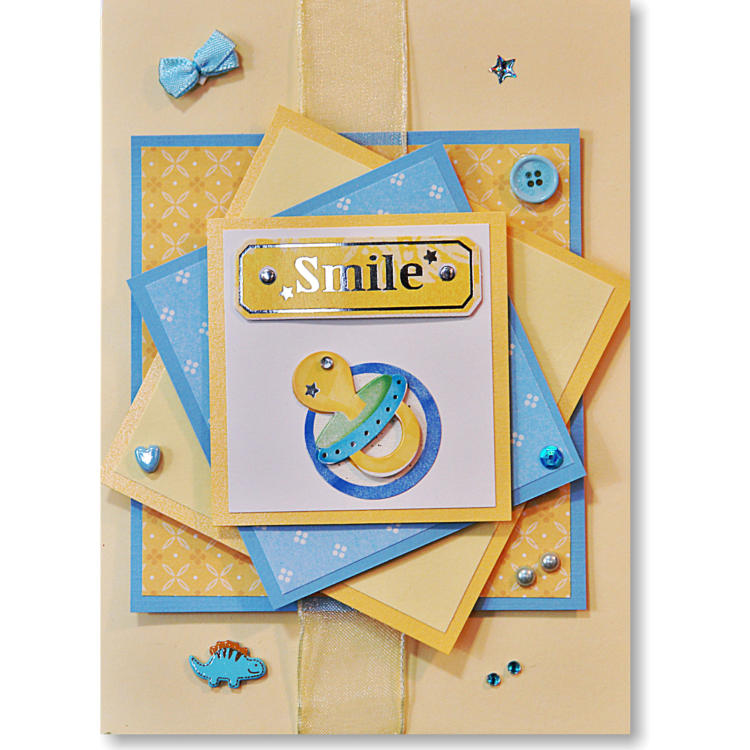 Yellow and blue with a baby pacifier