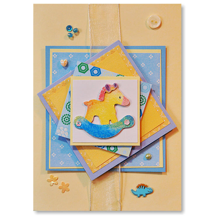 Yellow and blue with a rocking horse